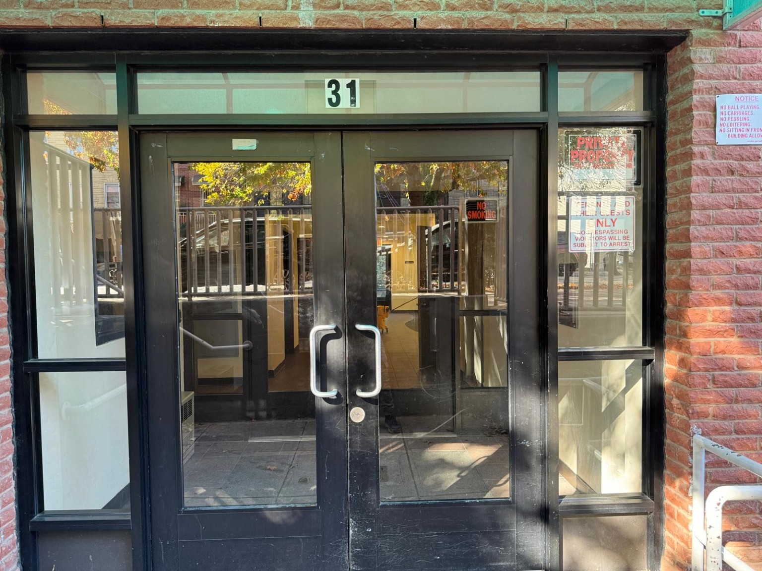 The commercial entry doors are now restored with clean, secure glass panels that improve safety and appearance. The doors operate smoothly, and the entrance presents a professional, well-maintained look suitable for a high-traffic building.
